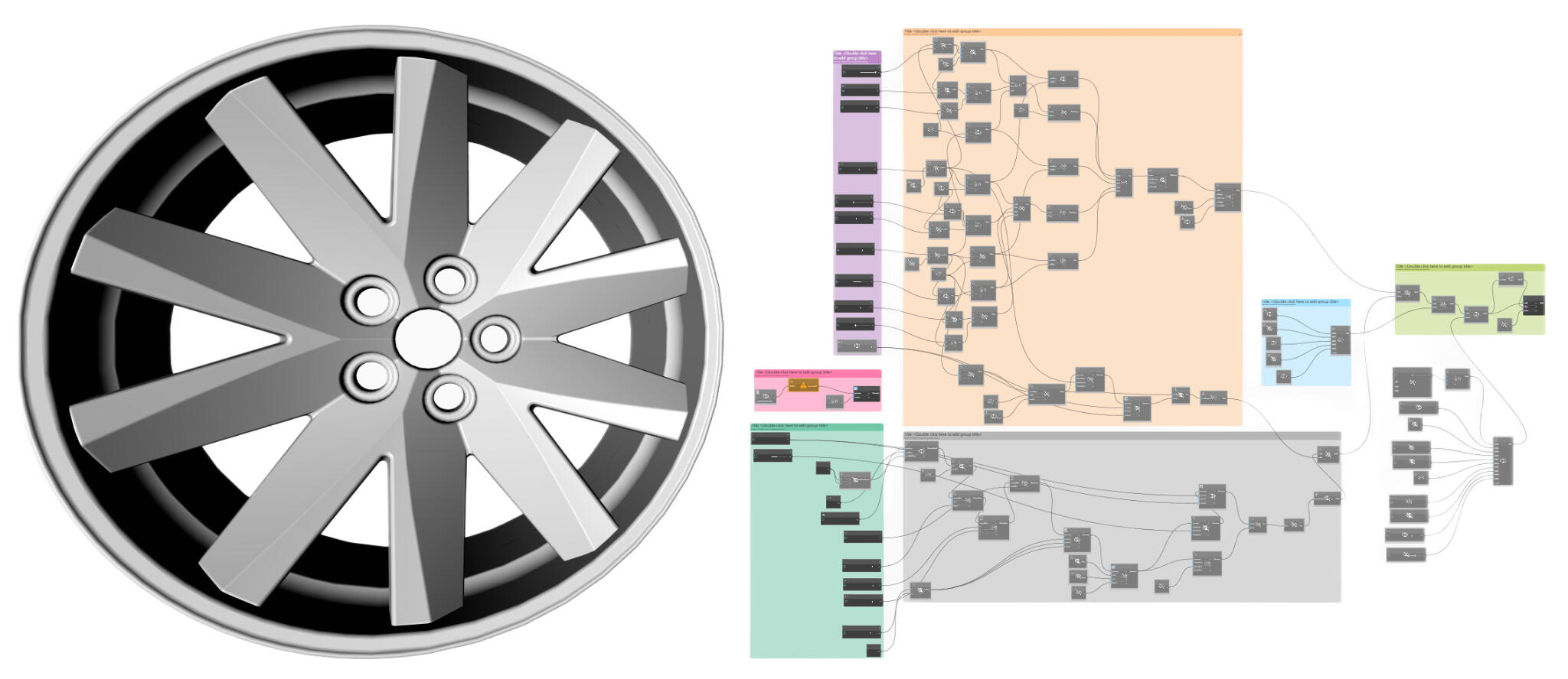 Hybrid modeling workflow in Alias with detailed visualization in VRED. Combines organic SubD surfaces with precise NURBS trimming for flexible, texture-ready geometry.